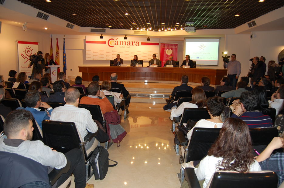 La cuarta edición del Foro GastroEmprende ha reunido en la Cámara de Comercio de Ciudad Real a 160 profesionales y emprendedores del sector turístico en una cita que ha servido para destacar el potencial de la provincia en este campo y para sentar las bases a seguir con el objetivo de seguir creciendo en este sentido. Así, ponentes y asistentes, han podido compartir experiencias y conocimientos en torno a un sector repleto de oportunidades. GastroEmprende está organizado por la Cámara de Comercio y el CEEI y cuenta con la cofinanciación de la Junta de Comunidades de Castilla-La Mancha, la Diputación Provincial de Ciudad Real y el Fondo Europeo de Desarrollo Regional y con la colaboración del Instituto Municipal de Promoción Económica, Formación y Empleo (Impefe), la Asociación Provincial de Hostelería y Turismo y la DO Valdepeñas,