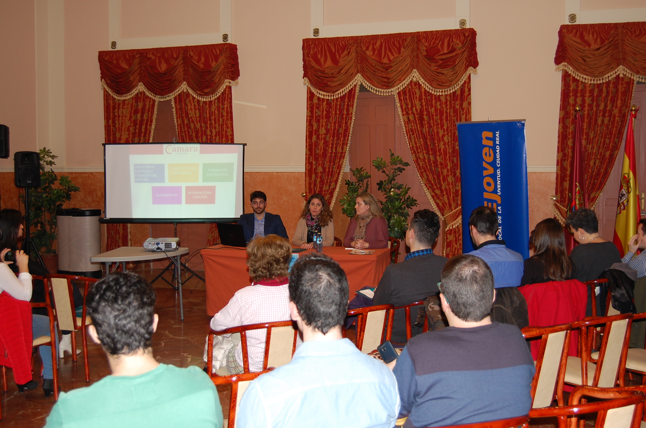 La Cámara de Comercio de Ciudad Real ha participado activamente en la Startup Europe Week que se está celebrando en Ciudad Real y que tiene como objetivo ayudar a los emprendedores y acercarles a los recursos existentes para hacer crecer su negocio. En este sentido, desde la Cámara se han mostrado en la primera jornada de esta acción las diferentes líneas de apoyo y programas con los que cuenta la institución cameral para asesorar y apoyar a los emprendedores; para ello, la directora del Área de Desarrollo Empresarial, Mayte Carmona; y la técnico Yolanda Mas han abordado durante el panel de apoyo gubernamental tanto estos aspectos como las claves para conocer el Sistema Nacional de Garantía Juvenil.