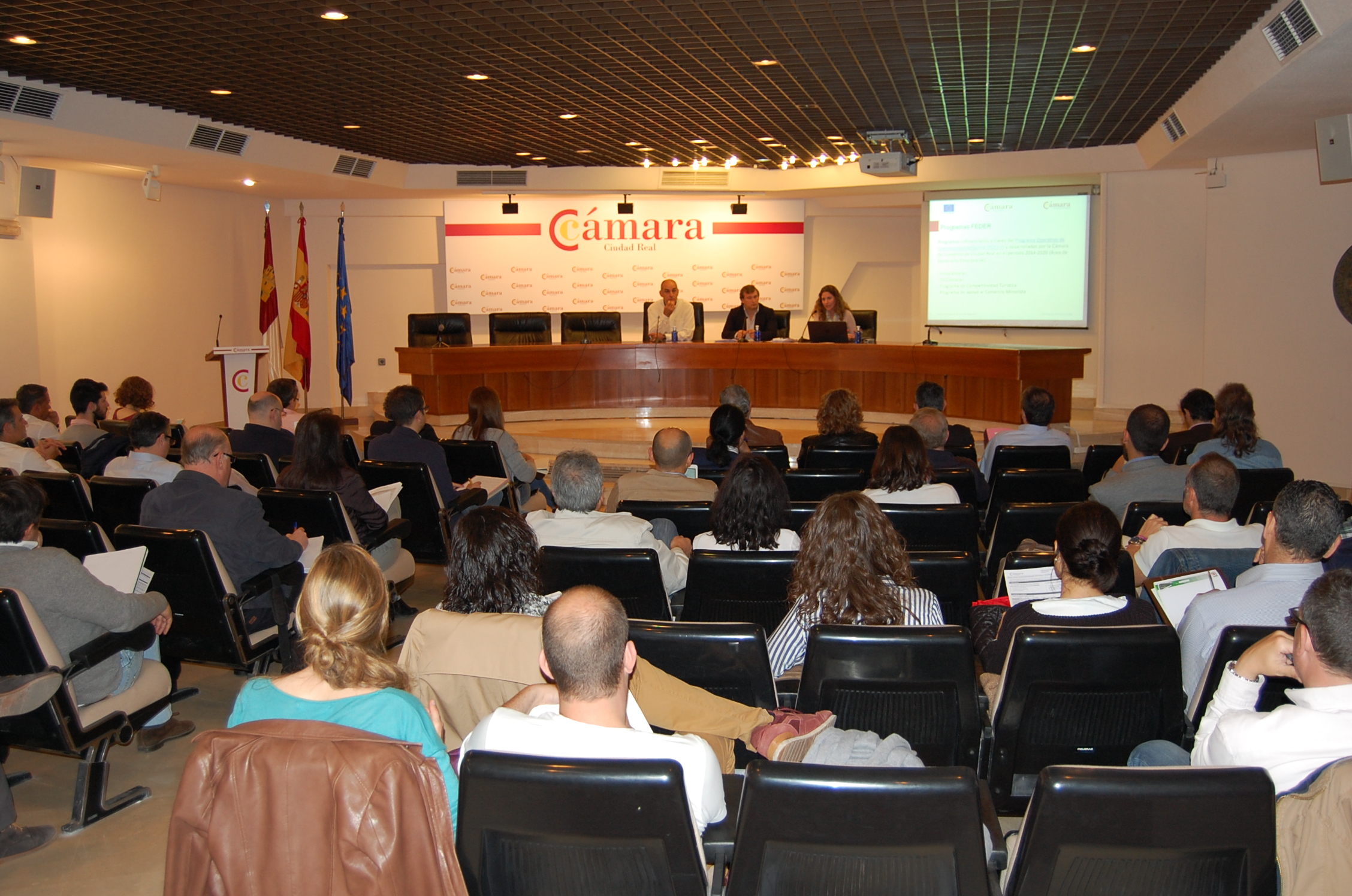 La Cámara de Comercio de Ciudad Real ha celebrado una jornada informativa en la que más de 60 empresas y emprendedores de la provincia han podido conocer con detalle la próxima convocatoria de los programas Innocámaras y TICCámaras. Durante la sesión se han explicado a todos los asistentes las claves de estos programas centrados en la cultura de la innovación y en la mejora de la competitividad de las pymes mediante la incorporación de las nuevas tecnologías. Ambos programas cuentan con la colaboración de la Cámara de España y con la cofinanciación del Fondo Europeo de Desarrollo Regional (Feder).